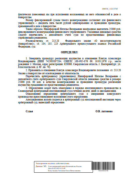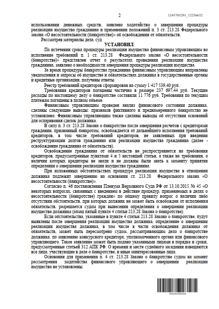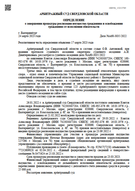 Лично гарантирую, что процедура списания долгов пройдет на законном основании по 127 ФЗ РФ. Долги спишутся безвозвратно, с сохранением иммущества, активов и заработной платы.Наша команда работает слаженно уже на протяжении 7-ми лет!